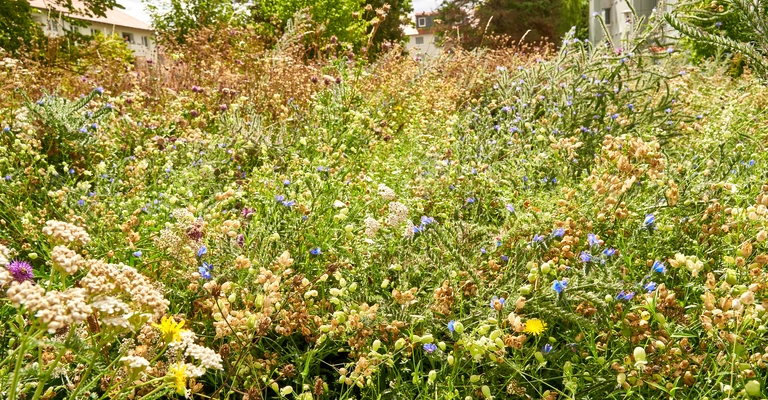 Bunte Blüten, hohe Gräser und Wildkräuter haben sich deutlich von der Umgebung abgehoben und eine Oase für zahlreiche Insekten geboten.